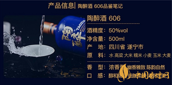 陶醉酒606色泽晶莹透澈,香气幽香雅致、陈韵自然,口感醇和绵甜、细腻柔滑、沁润甘美,余韵怡心舒爽、温暖。陶醉606是舍得酒业针对中等收入消费人群推出了一款创新型浓香中白酒。这款酒通过自然独到的生态方式粹酿,拥有醇厚幽香的味道。低调古朴不失时尚质感的瓶身设计,赢得不少新中等收入群体的芳心。 50度500ml陶醉606单瓶瓶京东官方零售价格大概是338元。