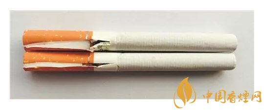 假烟拉线头为半椭圆形,“湖南中烟工业有限责任公司出品”字体笔画较粗。