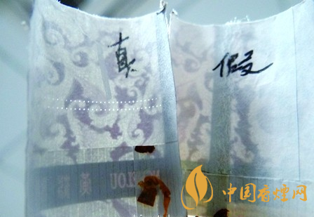 真品防伪技术具有在图像3D潜影特征,给人的感觉好像是文字和图案潜伏在印刷品当中一样,使用现代超高精准度的扫描仪和照相制版都不能再呈现的立体效果,防止印刷品被复制;假烟多采用照相复制技术,其文字和图案印在表面无法呈现出3D效果,与真品防伪标志存在显著差异。