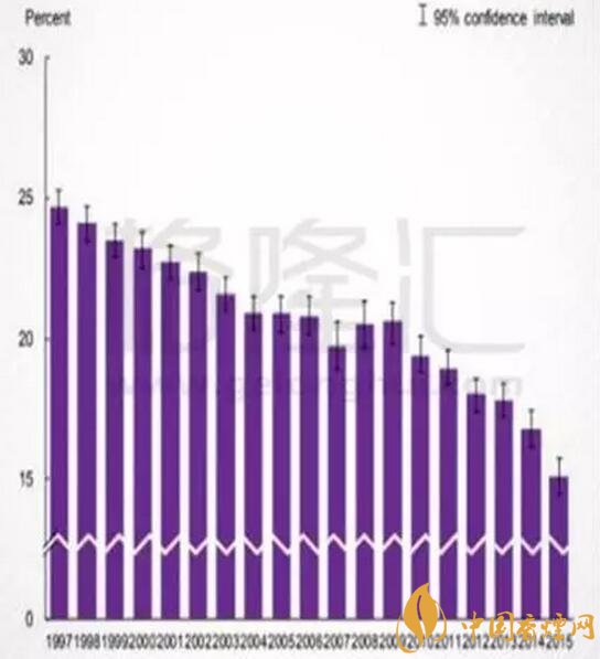 但是菲利普莫里斯国际和奥驰亚近年来业绩有所下滑,主要受到全球控烟活动、卷烟提税顺价、部分地方控烟过激等多重压力的影响,导致全球烟草市场呈现不同程度的下降趋势。除了全球范围的控烟运动以外,随着人们收入水平的不断提高,人们对健康的意识越来越强,传统卷烟销量将不断下滑。在1990年至2017年期间,全球吸烟率从29.4%下降到了15.3%。以美国为例,美国疾病控制与预防中心的统计数据显示,美国成年人的吸烟率从2000年的23.2%下降到2016年的15.2%。
