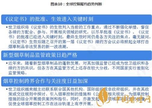 据国家局、北京市局(公司)、福建中烟、国家局经济研究所共同发布的《2017年世界控烟履约进展报告》判断,目前《议定书》的批准和生效已经入关键时刻,未来新型烟草制品监管政策将日趋严格。