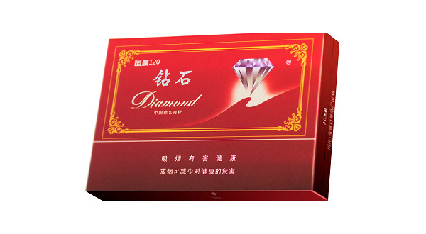 钻石(硬红120)俗称“国嘴120”,是我国卷烟外观形状取得全新突破的创新产品,以降焦减害为目的,以科技技术含量为支撑,突破传统卷烟模式,给人带来耳目一新的感觉。