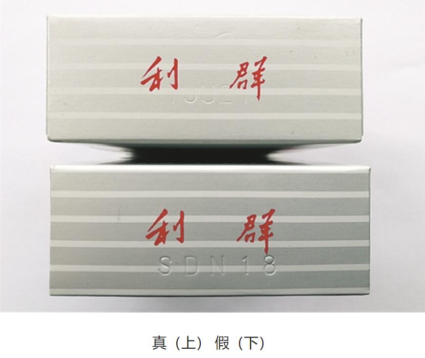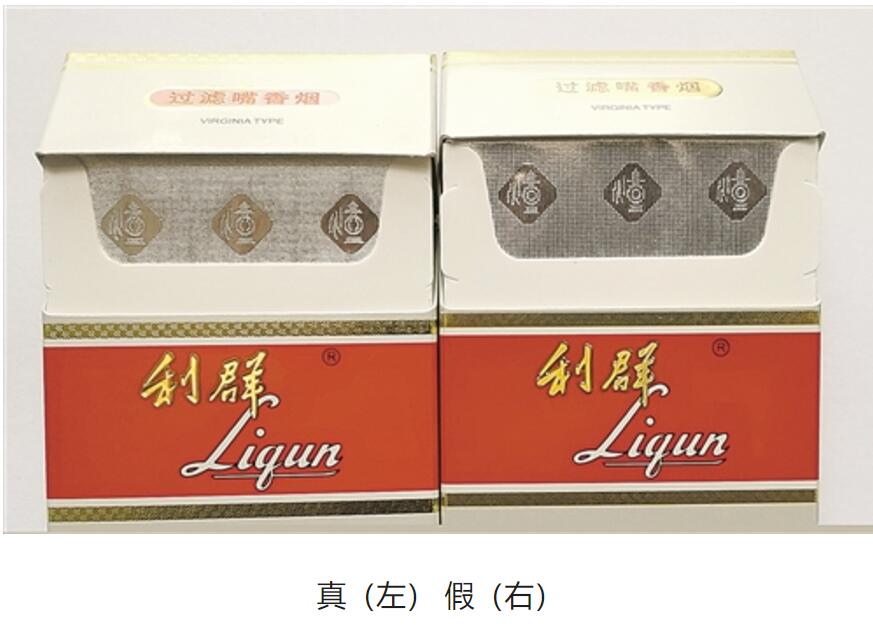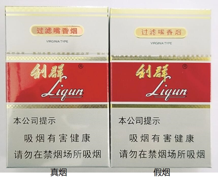 真烟底部的钢印是机器动态打印,深浅不一与“利群”二字有重叠;假烟钢印的字体深浅较一致而且都在“利群”两字的下方。
