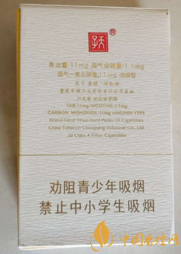 天子壹号香烟,烟长84mm,天然干法再造烟叶成型综合技术和传统丝束复合技术,具有烟草增香,润感突出的作用。部分天然烟草水溶性物质进入口腔,可让消费者体验传统“无嘴”香烟带来烟草本香。下面我们一起来看天子壹号香烟的参数信息:焦油量:11mg 烟碱量:1.1mg 一氧化碳量:11mg