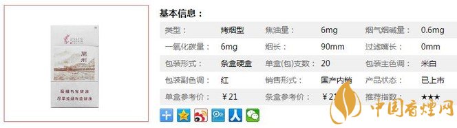 类型 :烤烟型 焦油量 :6mg 烟气烟碱量 :0.6mg 一氧化碳量 :4mg
