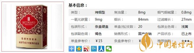 应用低焦专利技术“双重提香降焦技术”,打造8mg低焦新锐,烟气纯顺。产自代表国内最高水准的卷烟生产线,以五大智能工艺保障产品品质,以食品安全标准维护消费者利益。下面我们一起来看七匹狼鸿运的参数信息:焦油量:8mg. 烟碱量0.8mg. 一氧化碳量:9mg.