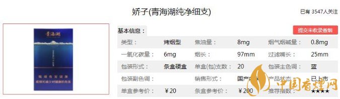 以上便是jrs直播小编为大家介绍的关于娇子青海湖纯净多少钱一包 青海湖纯净价格及图片介绍的相关信息,看完之后大家是不是对于娇子(青海湖纯净)这款香烟的相关信息更加了解呢。大家还想查询更多的相关内容欢迎点击:娇子青海湖细支香烟多少钱一包 娇子青海湖细支参数