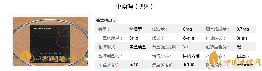 中南海(典8)多少钱一包 中南海(典8)价格及口感评测
