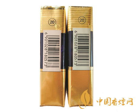 真 假 商标纸侧面印刷工艺对比:真烟商标纸侧面条纹较窄、颜色较浅,圆圈和数字“20”颜色较深、位置较低,条形码位置稍低;假烟商标纸侧面条纹较宽、颜色较深,圆圈和数字“20”颜色较浅、位置偏高,条形码位置稍高。