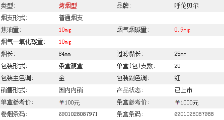 【云烟呼伦贝尔价格金色 金色呼伦贝尔烟多少钱一盒】相关推荐文章: