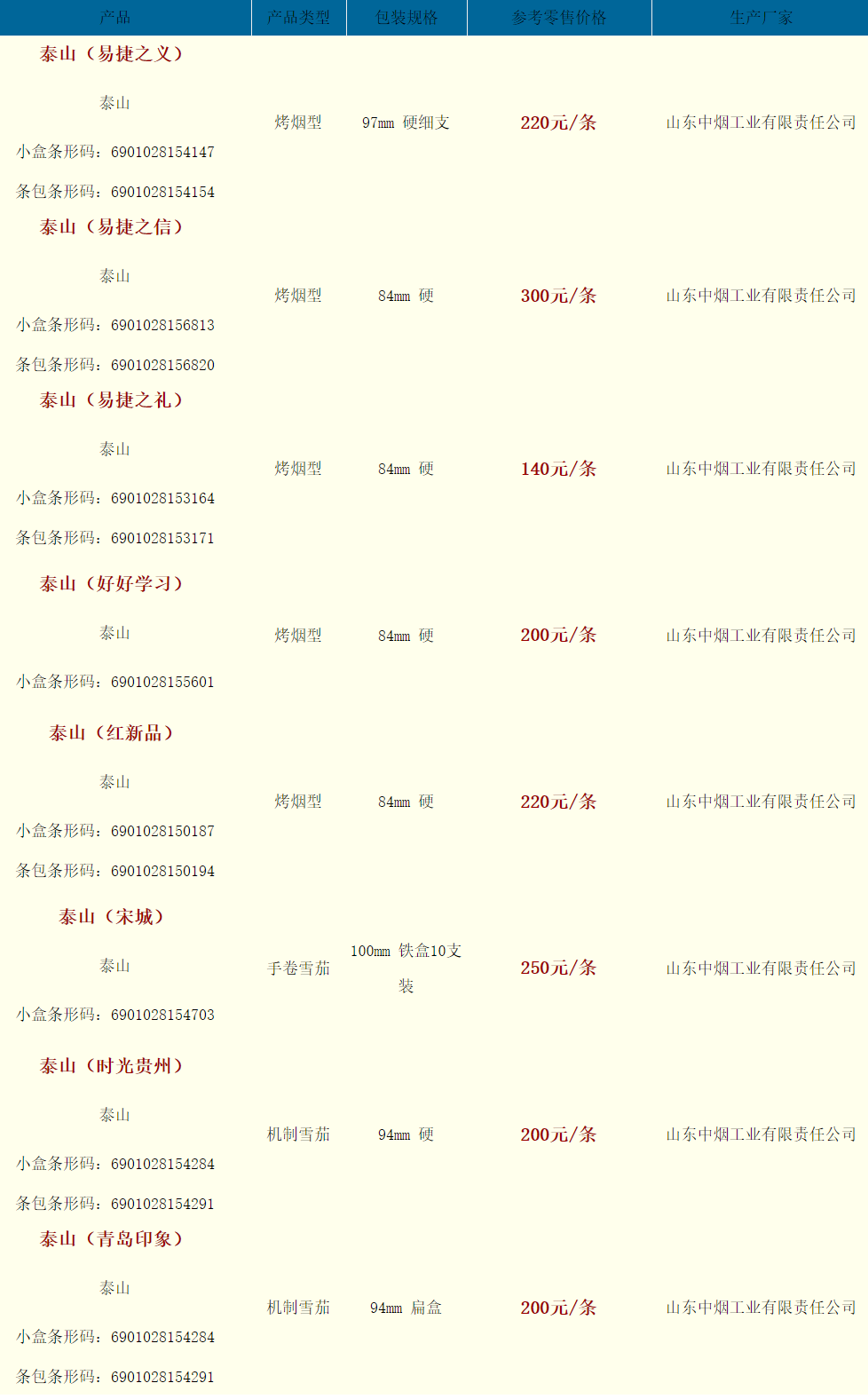 以上是小编整理的有关泰山香烟价格表图2021和泰山香烟价格表和图片大全集的相关资料信息,希望能够对大家了解相关情况有所帮助,想获得更多消息资讯请关注jrs直播!