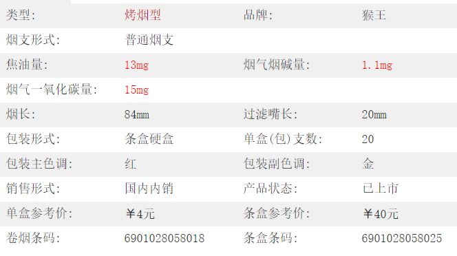 【猴王硬红多少钱一盒 红猴王香烟价格表图2021】相关推荐文章: