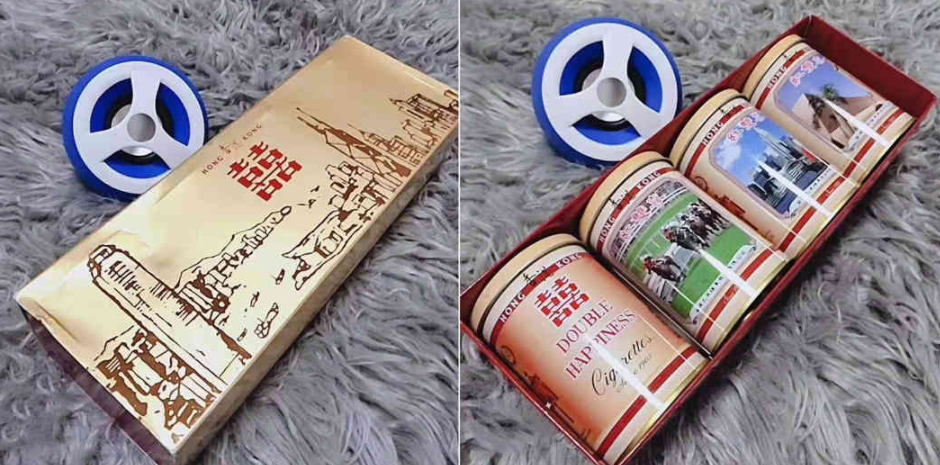 香港四罐,罐上印着具有代表性香港图片,一罐一样,