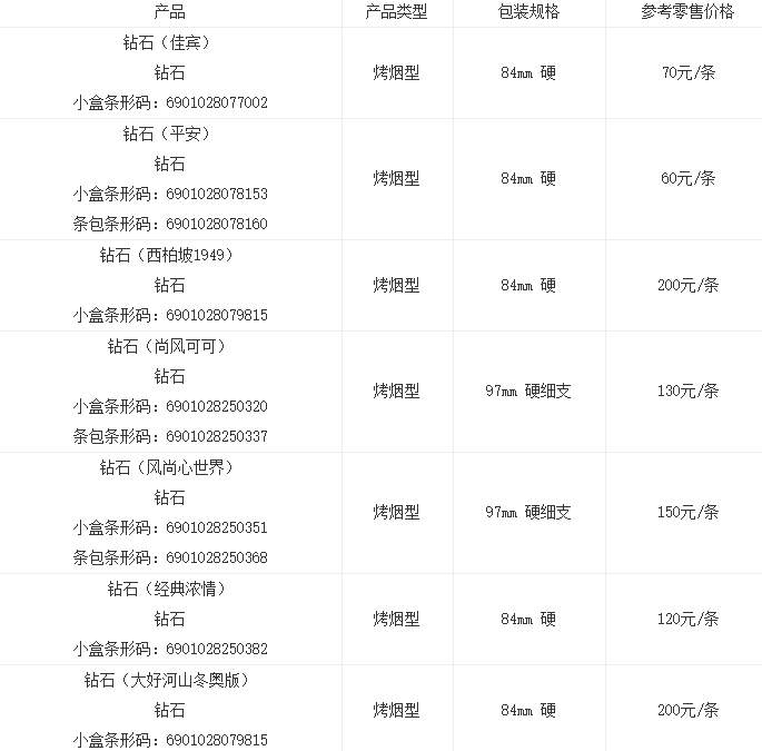 以上是小编整理的有关钻石冬韵香烟价格和钻石香烟种类及价格2021的相关资料信息,希望能够对大家了解相关情况有所帮助,想获得更多消息资讯请关注jrs直播!