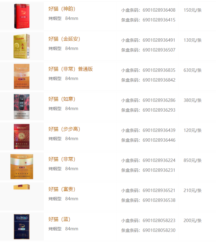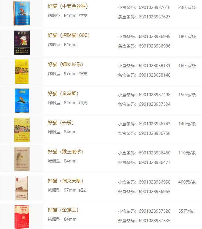 以上就是有关于好猫烟的价格和图片的相关资讯,资料来源于网络,由jrs直播小编收集整理,如欲了解更多详情信息,请关注jrs直播,小编将会为大家带来更多信息。