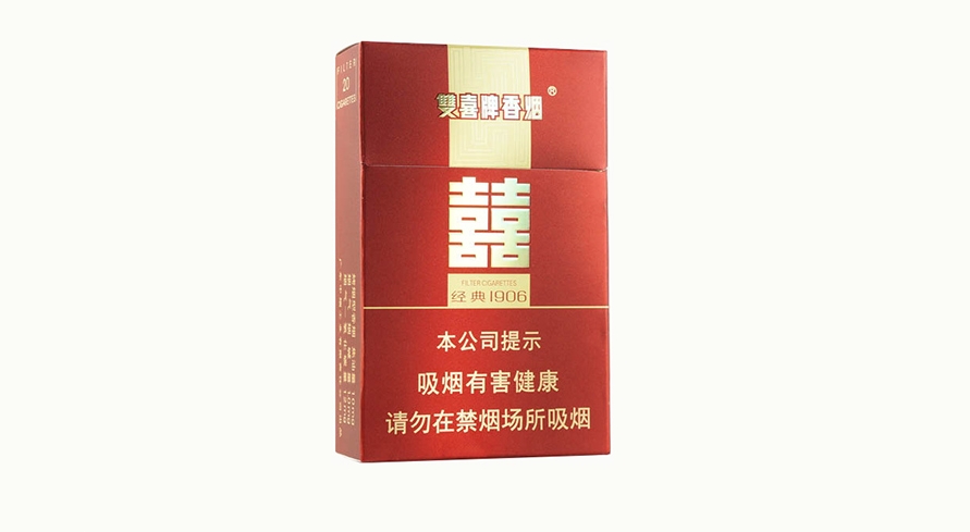 双喜(硬经典1906)以现代科技艺术化地重现烟草原香,纯天然,少添加,精加工,原烟香,开创中国卷烟“原香”时代。产品吸味醇正,香气高雅飘逸,醇厚透发,烟气细腻悠长,余味清爽而绵长,甘甜生津。此外,双重滤嘴也是广东中烟的技术创新,有效地减少了卷烟中的有害成分。