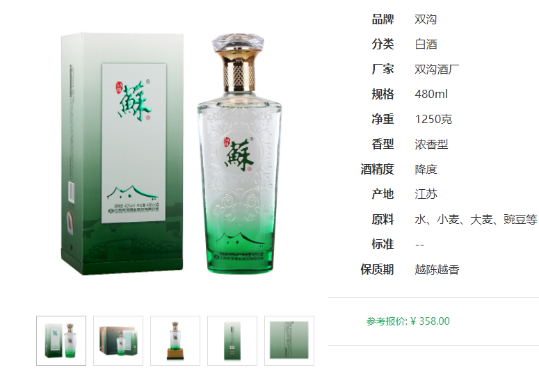 江苏省双沟酒苏酒5A级42°度浓香型纯粮食白酒480ml*4瓶一整箱装的京东官方价格是1300元,一瓶装的官方零售价格大概358元。双沟苏酒5A级42度怎么样呢?接下来详细给大家介绍。