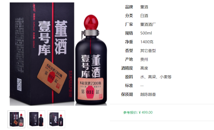 贵州董酒壹号库54°度董香型收藏老酒纯粮固态手工酿造白酒500ml一瓶装的官方零售价格大概499元。贵州董酒壹号库怎么样呢?接下来详细给大家介绍。