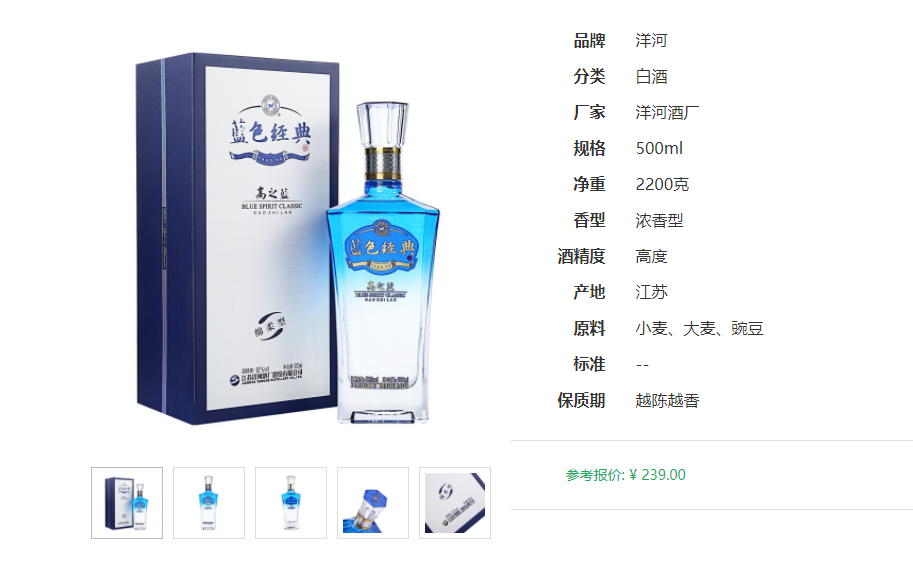 洋河蓝色经典高之蓝52度口感绵柔浓香型白酒500ml*6瓶一箱装的京东官方价格是1439元,一瓶的京东官方零售价格大概是239元。洋河蓝色经典高之蓝52度怎么样呢?接下来详细给大家介绍。