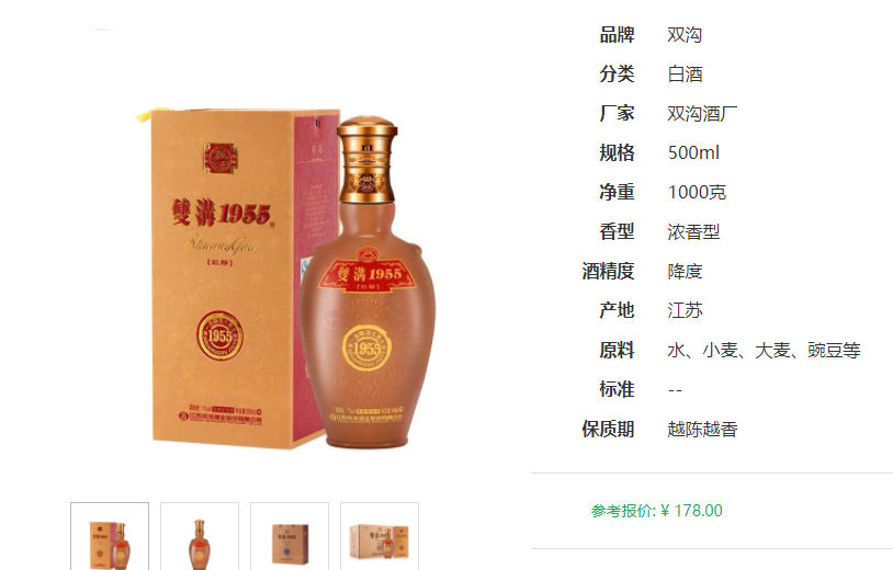 江苏省双沟酒1955红标42°度浓香型送礼自饮白酒500ml*6瓶一整套装的京东官方价格是1068元,一瓶装的官方零售价格大概178元。双沟1955红标42度怎么样呢?接下来详细给大家介绍。