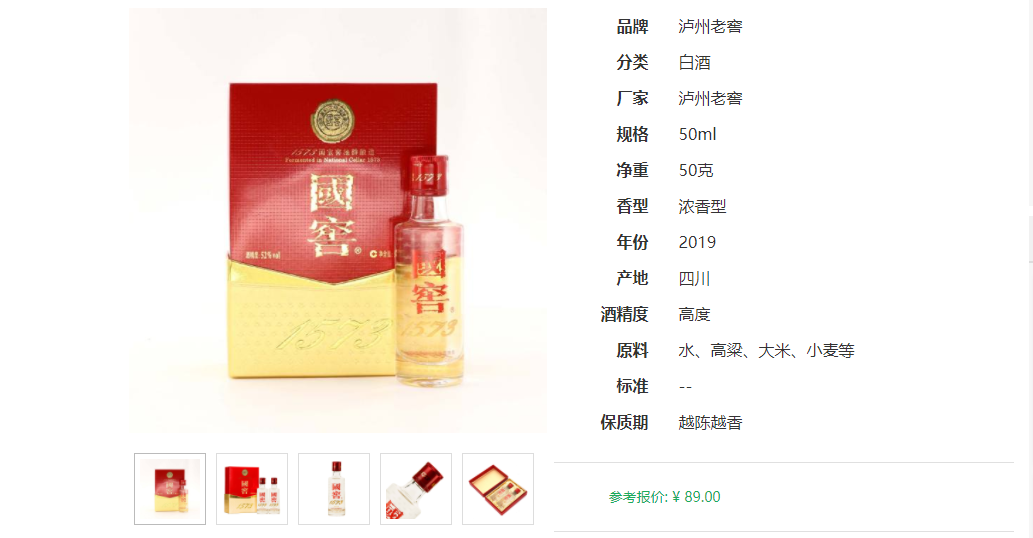泸州老窖 国窖1573 浓香型白酒 52度50ml