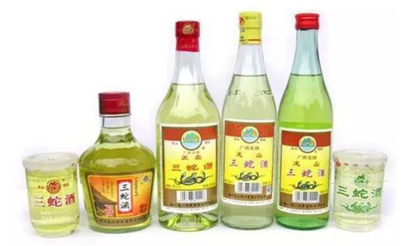 三蛇酒是广西地区一个知名度非常高的药酒,它是用乌梢蛇、大白花蛇和生地黄等为主要原料泡制而成的药酒,这类药酒有着祛除风湿的功能,这种纯天然动植物的泡酒方式,在广西非常受欢迎。