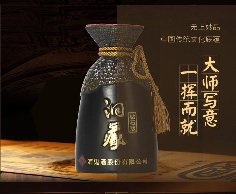 酒鬼洞藏酒钻石版是由精选的优质酒鬼洞藏文化酒,经大师精心调制而成。其酒体馥郁幽雅,陈香舒适,醇厚丰满,落口净爽,回味悠长;其包装富贵而不奢华,沉稳内敛却又个性张扬,真所谓张弛有度,内外兼修。
