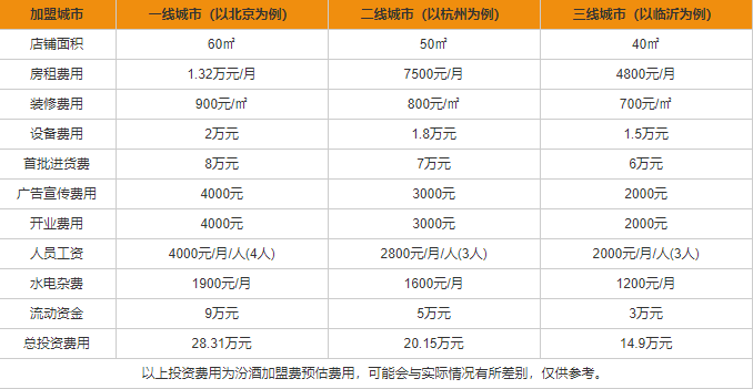 3、加盟方的经济实力不可低于“汾酒”单店投资的具体投资计划。