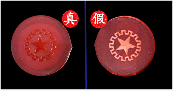 3、仔细看红胶帽顶端五角星这里,真的五角星一角正对一圆角齿轮,并且两个圆角齿轮中间隔了3个齿轮,假的与这个不符。