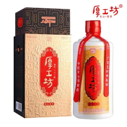 “厚工坊”酿造的酱酒品牌。厚工坊生产基地位于茅台镇赤水河畔,坐落于我国酱香白酒核心产区,占地300余亩,企业,拥有三项国家白酒酿造技术专利,产能规模与技术优势居茅台镇前列,“厚工坊”品牌产品选用当地一品红壳糯高粱为原料,遵承地道传统古法酿造。