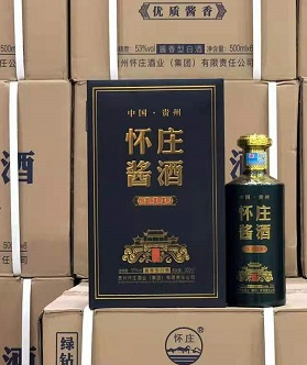 怀庄酱酒绿钻,53度500ml酱香型白酒,精选小麦,高粱,水。茅台镇独特工艺“天人合一”酿造经典,老坛窖藏,时光的味道。酒花饱满均匀,经久不散,酱香突出,幽雅细腻,空杯留香的风格特点。不止酒质棒,怀庄酱酒绿钻,包装大气上档次上翻盖礼盒。馈赠佳品,送礼神器,适合高端商务赠送,宴请,自饮都是高大尚的选择。好喝不贵,怀庄酱酒绿钻尊市场零售价格不算太高,适合大众消费,喜欢的可以到各大批发市场了解购买,批发团购,量大从优。