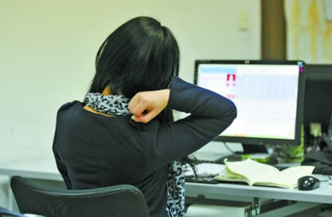 食管的上端和第六颈椎相邻,当第六颈椎出现增生,就会压迫和刺激食管,甚至造成食管周围炎症、水肿,在进食时产生异物感、吞咽不畅等症状。长时间对着电脑工作,且伴有颈肩痛的人,如果出现吞咽不畅、异物感时,要怀疑颈椎病的可能。