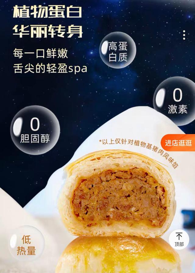 中秋临近,植物肉还瞄准了一直以来被认为高油脂、高糖分、高热量的月饼。一款植物肉月饼打出“高蛋白质”“低热量”“低饱和脂肪酸”的广告,声称采用新科技将植物蛋白分解,使其拥有媲美真肉的口感、香气和颜色,并标榜“美味与健康兼得”。