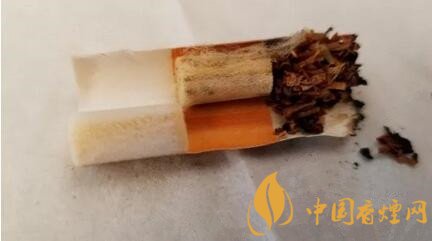 烟丝从外观看,大烟庄的以陈化时间更长一些的棕黄色烟丝为主。烟梗切片比小烟庄略少。这个从手捏烟支的指尖触感能感受到两者的差别。