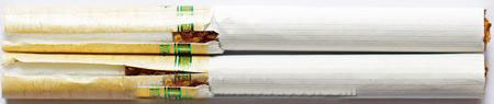 真品卷烟采用机器烫封一次成型,封口较平整,拉线头较大且为规则的半椭圆形;假烟一般采用手工电烙铁烫封,封口起皱较大,拉线头形状不规则,且较小,与真品特征存在明显差异。