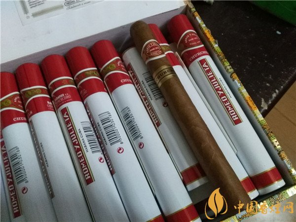 这款古巴雪茄烟茄体长度为178mm,直径为18mm,环径为47mm。每个茄体都配有独立的铝管包装,茄体为深棕色,其品牌常用的色系,茄身结构精良,表面十分光滑,茄衣略带油滑感,每个雪茄都贴有两个代表荣誉的标环,一个红色性感的标环,一个金色而显贵的质感标环。单看茄体论及古巴雪茄烟罗密欧长丘吉尔怎么样,特喜欢它极带质感的金属标环超显档次,极具时代感。想了解这款雪茄烟价格请点击:古巴雪茄价格表#p#副标题#e#