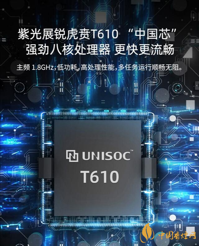 虎贲T610采用12nm制程工艺,由两颗1.8 GHz的Arm Cortex-A75 CPU 和六颗1.8 GHz的Arm Cortex-A55 处理器组成,GPU 采用的是614.4MHz 的Mali G52。