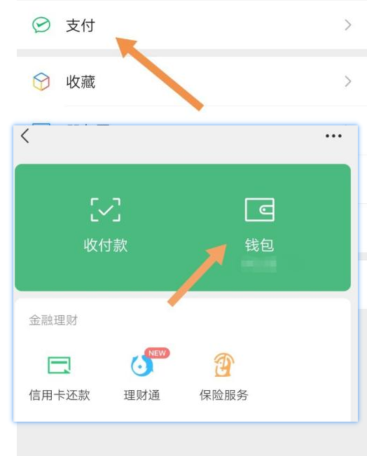 1、进入应用“我”界面中,选中页面中的“支付”,然后点击“支付”中的“钱包”。