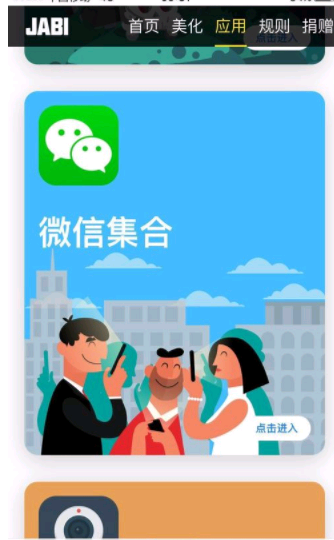 5、接下来进入到网站的主页,在其众多的选项中,选择应用下载,接下来就会进入软件下载的界面,在里边找到微信集合的选项,如图所示: