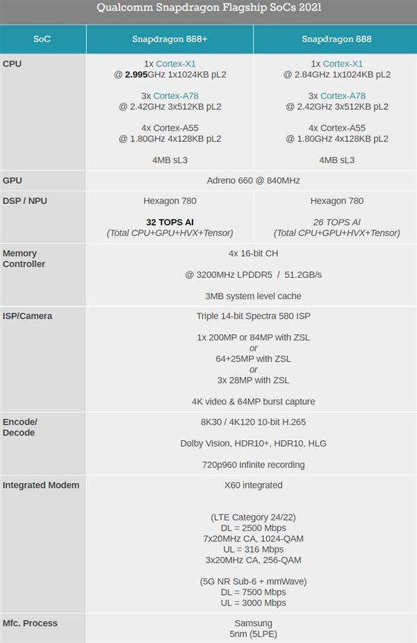 骁龙888Plus只是骁龙888处理器的加强版,依旧采用三星5nm工艺制程,仅仅提升主频和AI能力。
