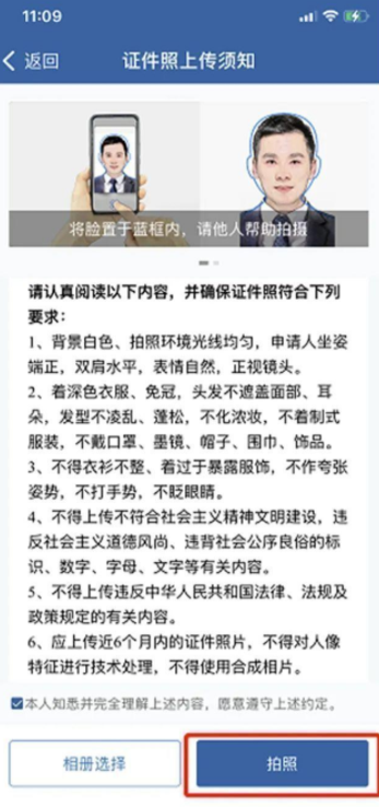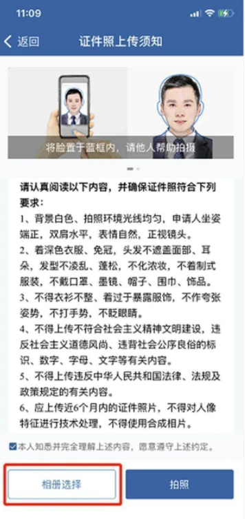 6、应上传近6个月内的证件照片,不得对人像特征进行技术处理,不得使用合成相片。