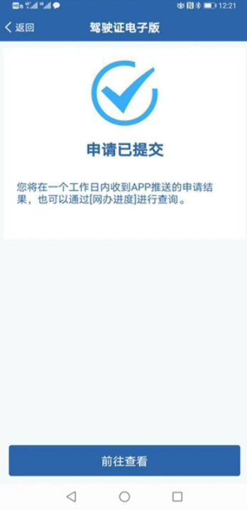 (三)使用相册的证件照片申领。对信息系统无符合要求留存照片的,除拍照方式提交电子照片外,还可以在手机相册中选择证件照片,用于申领电子驾驶证。提交证件照片后,公安机关交通管理部门将在1个工作日内进行审核,对符合要求的,“交管12123”APP将生成电子驾驶证,并推送申请成功信息。