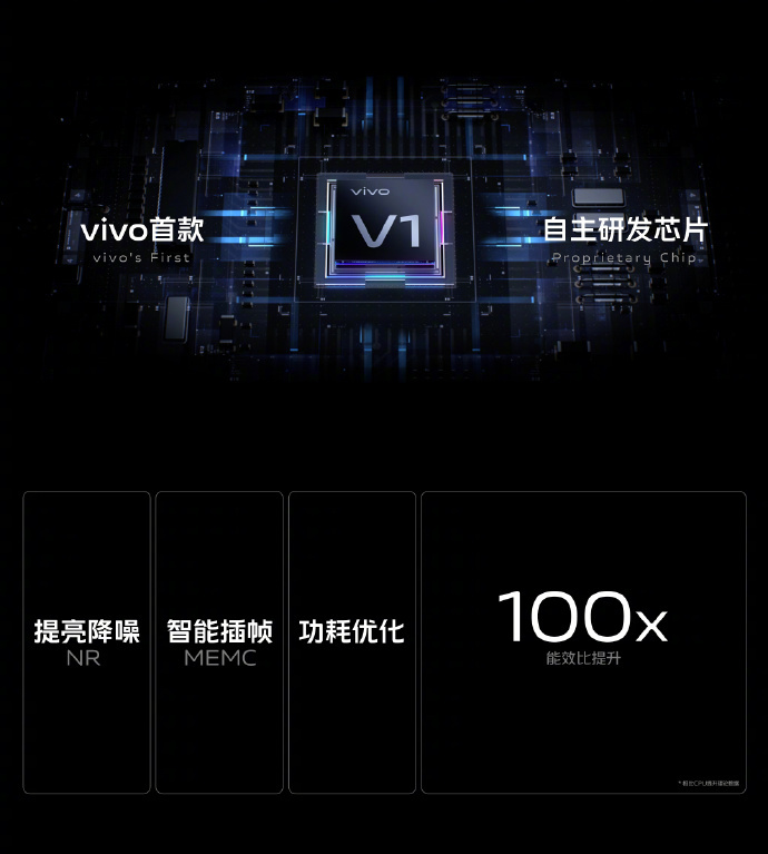 vivo X70 Pro 搭载 vivo 自主研发的专业影像芯片 V1,提供 NR 智能降噪、MEMC 智慧插帧以及相关算法的功耗降低三大能力,相比 CPU 面对复杂计算的能效比有 100 倍的理论提升。在拍摄夜景和视频时,提高了运算效率。