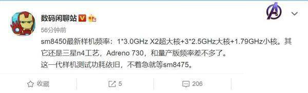 据悉,骁龙898基于三星4nm工艺制程打造,采用1+3+4的三丛集架构设计,超大核为Cortex X2,主频达到了3.0GHz,大核主频为2.5GHz,小核主频为1.79GHz,GPU为Adreno 730。