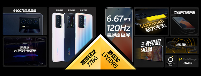 作为同级之中的性能先锋,iQOO Z5拥有相当出色的硬件配置,其采用了骁龙778G+LPDDR5 RAM+UFS 3.1 ROM的黄金性能组合,尤其是6400Mbps LPDDR5内存和满血版V6 UFS 3.1高速闪存,在千元价位机型中已经属于超标配置了。