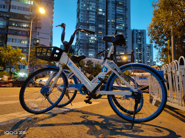 街景中路灯和背景车灯、窗户等强光部分高光控制良好,没有出现大面积影响画面观感的眩光。前景单车整体可见性良好,标志性的蓝色没有出现饱和度丢失的情况,包括车身文字在内的细节也保持清晰可辨。
