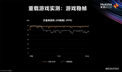 根据官方数据,天玑8100对比竞品,中度游戏功耗平均低27%、温度平均低6度,中重度游戏中则分别低24%、3度,而在重度游戏中可以稳定不降频,保证持续高帧。