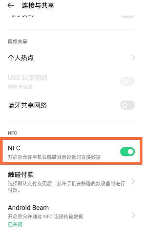 2、进入页面后我们可以在其中找到“NFC”,大家只要将其右侧开关打开即可