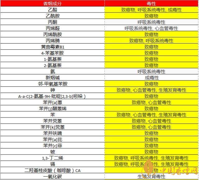 事实上,香烟里有超过7000种化学物质,其中93种明确有毒物质,78种是明确致癌物,78种!(见下表)