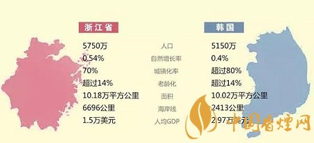 之所以选取韩国烟草与浙江烟草做比较,一个基本的依据是韩国与我国浙江省的人口、陆地面积等基本属性“差不多”。